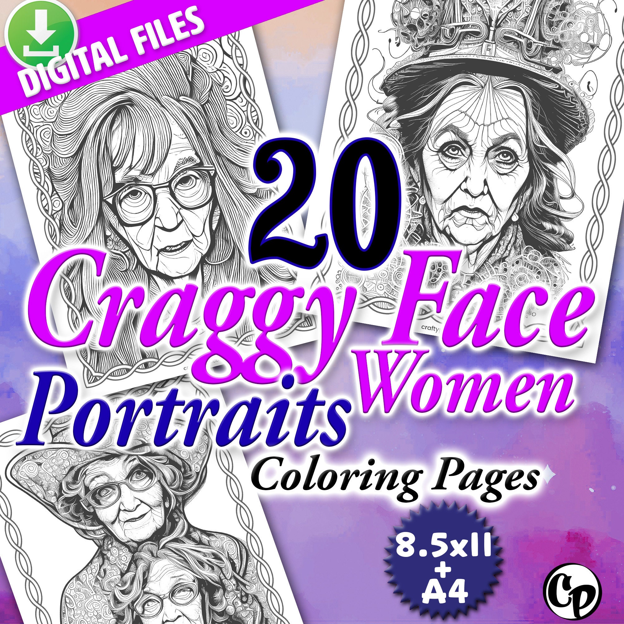 20 Craggy Face Women Portraits Coloring Pages Etsy