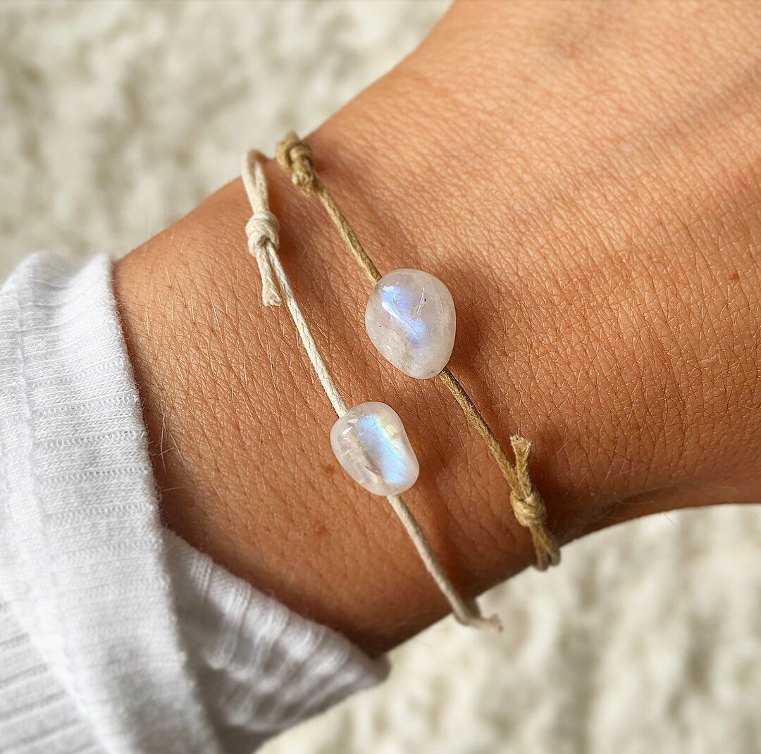 Rainbow Moonstone Gemstone Bracelet Adjustable Cord Bracelet Etsy