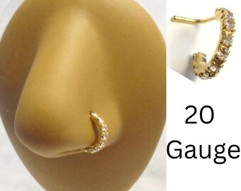 14k Gold Filled Diamond L Shape Nose Ring Stud Hoop Clear Cz Etsy